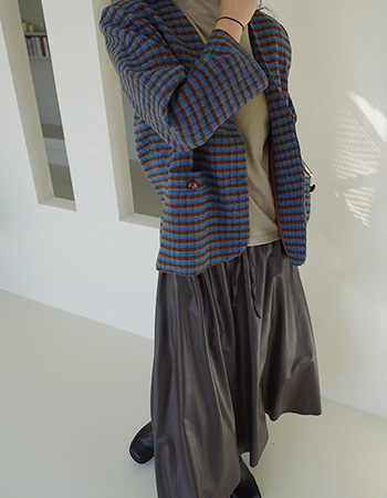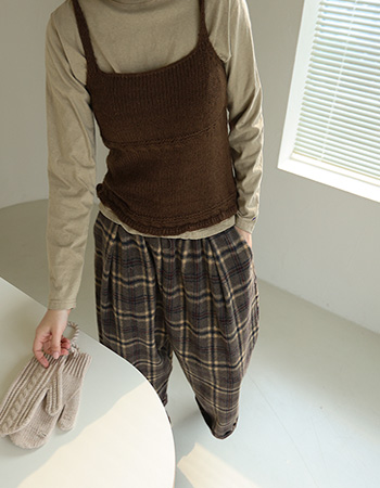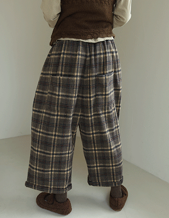 커잉 롤업 울 체크 와이드팬츠 58088