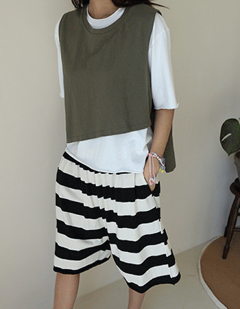 - 상품간략설명 : 볼드한 단가라의 팝한 칼라감이 데일리한 하의와 잘 어울려요