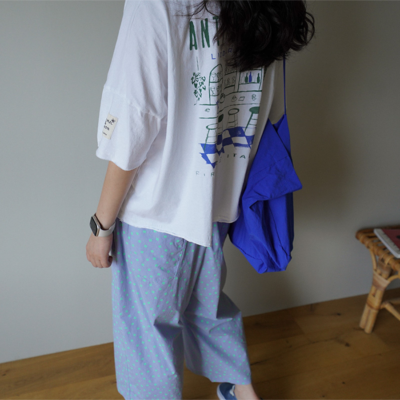 쨍한듯 부드러운듯 선명한 프린팅 색감과 빈티지한 폰트와 그림이 잘 어우러져 귀엽고 데일리한 아이템!