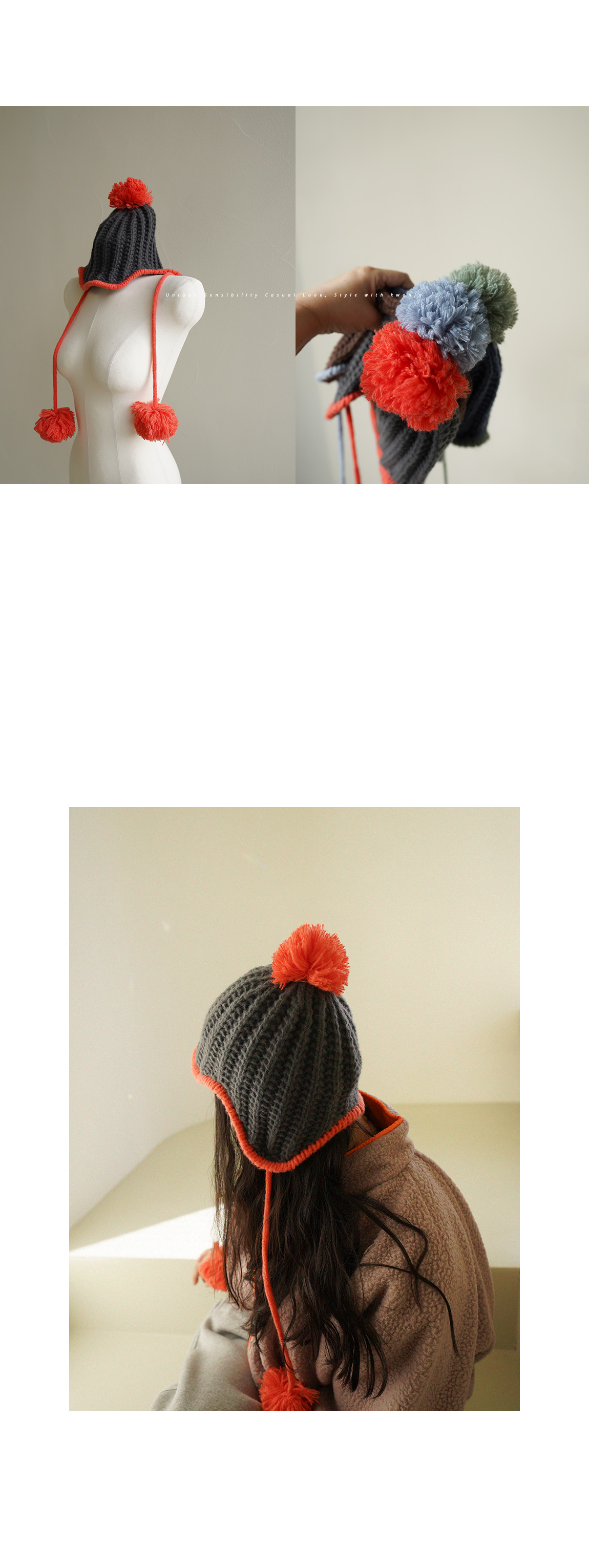 컬러배색 뜨개 방울모자 57413