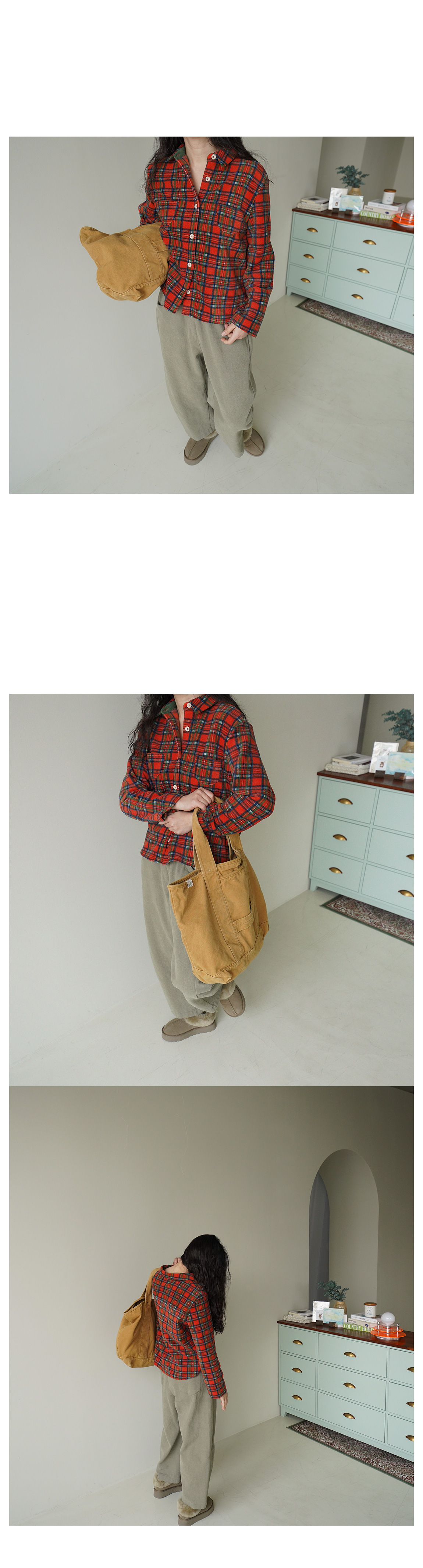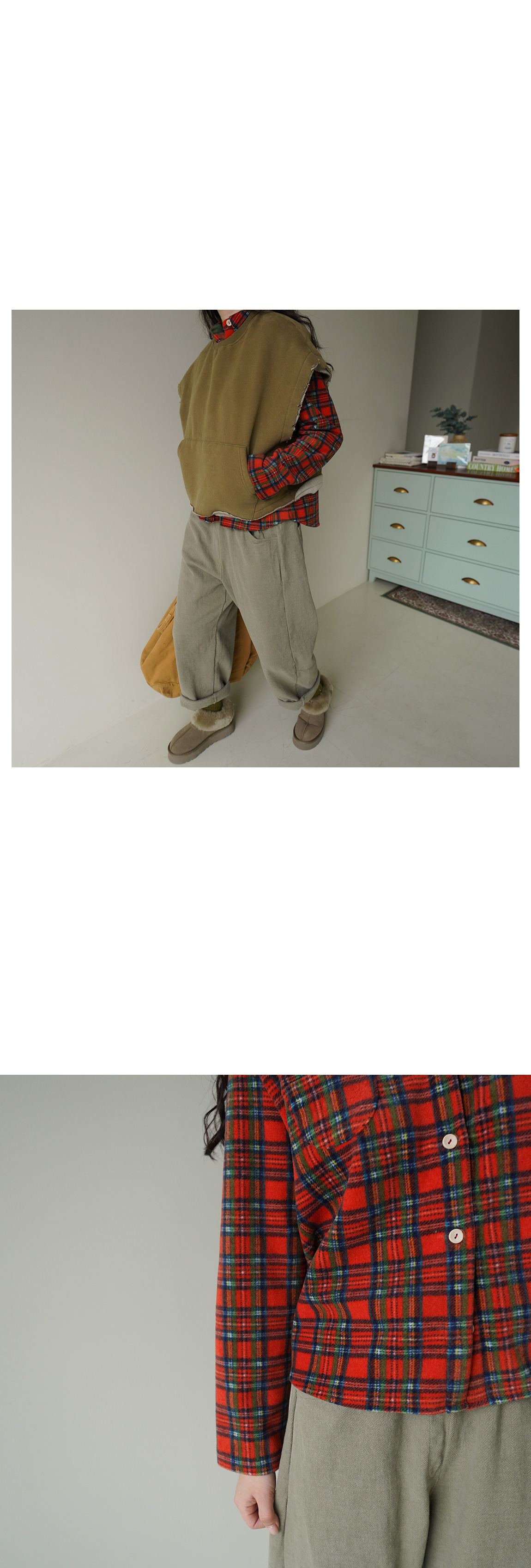 커리톤 배색 기모 체크셔츠 58735