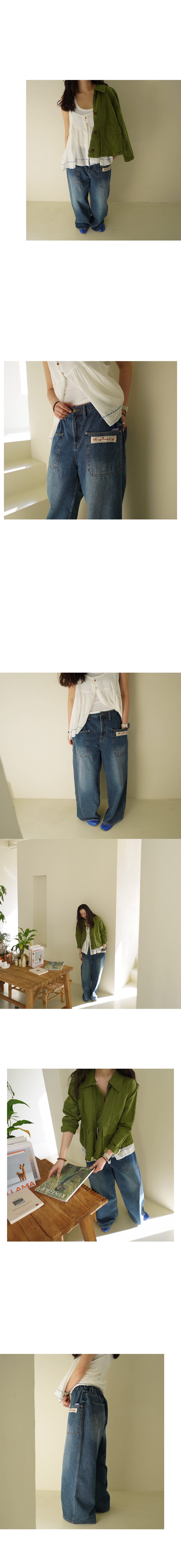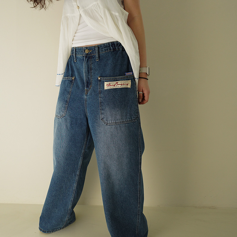 레이스패치 포켓 와이드진 60512