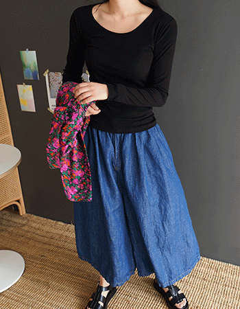 롱숏 쿨데님 밴딩팬츠 53268