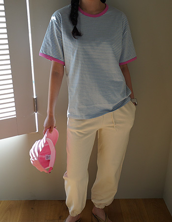 롤코 배색 단가라 반팔티 43184