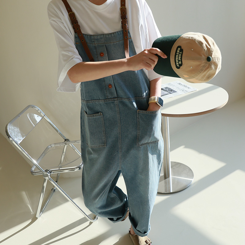 데님 배기 멜빵팬츠 34396