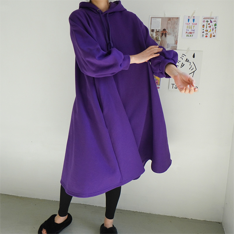 기모 박스 롱후드 원피스 12911